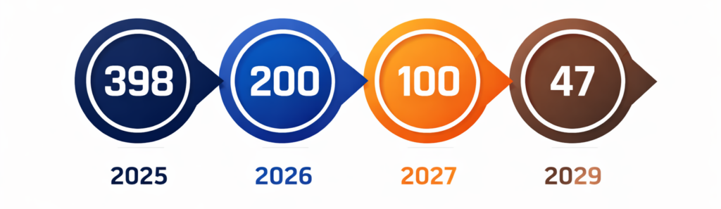 - Od 15. března 2029 – maximální platnost 47 dní (3. fáze zkracování)